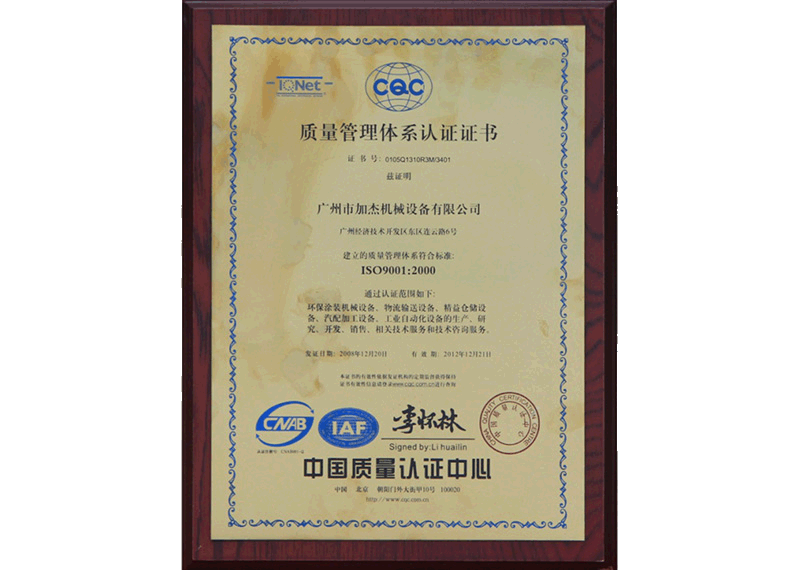 • 質量管理體系認證證書